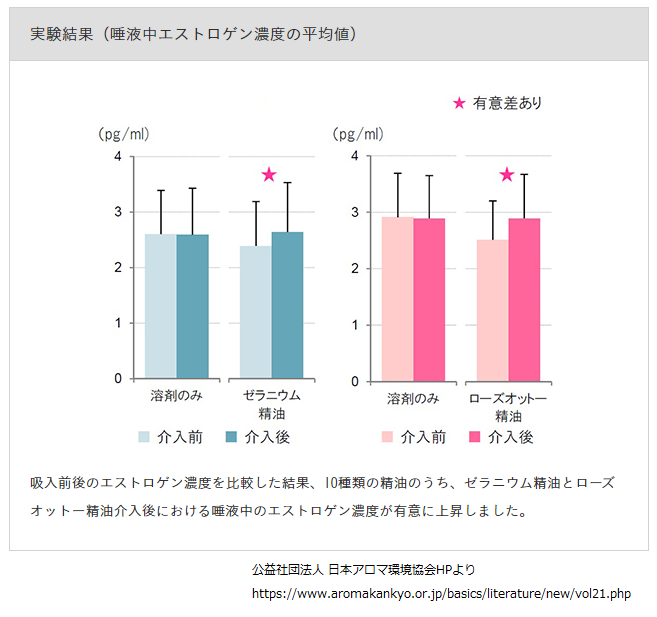 研究データ:精油の香り刺激で、唾液中エストロゲン濃度が上昇