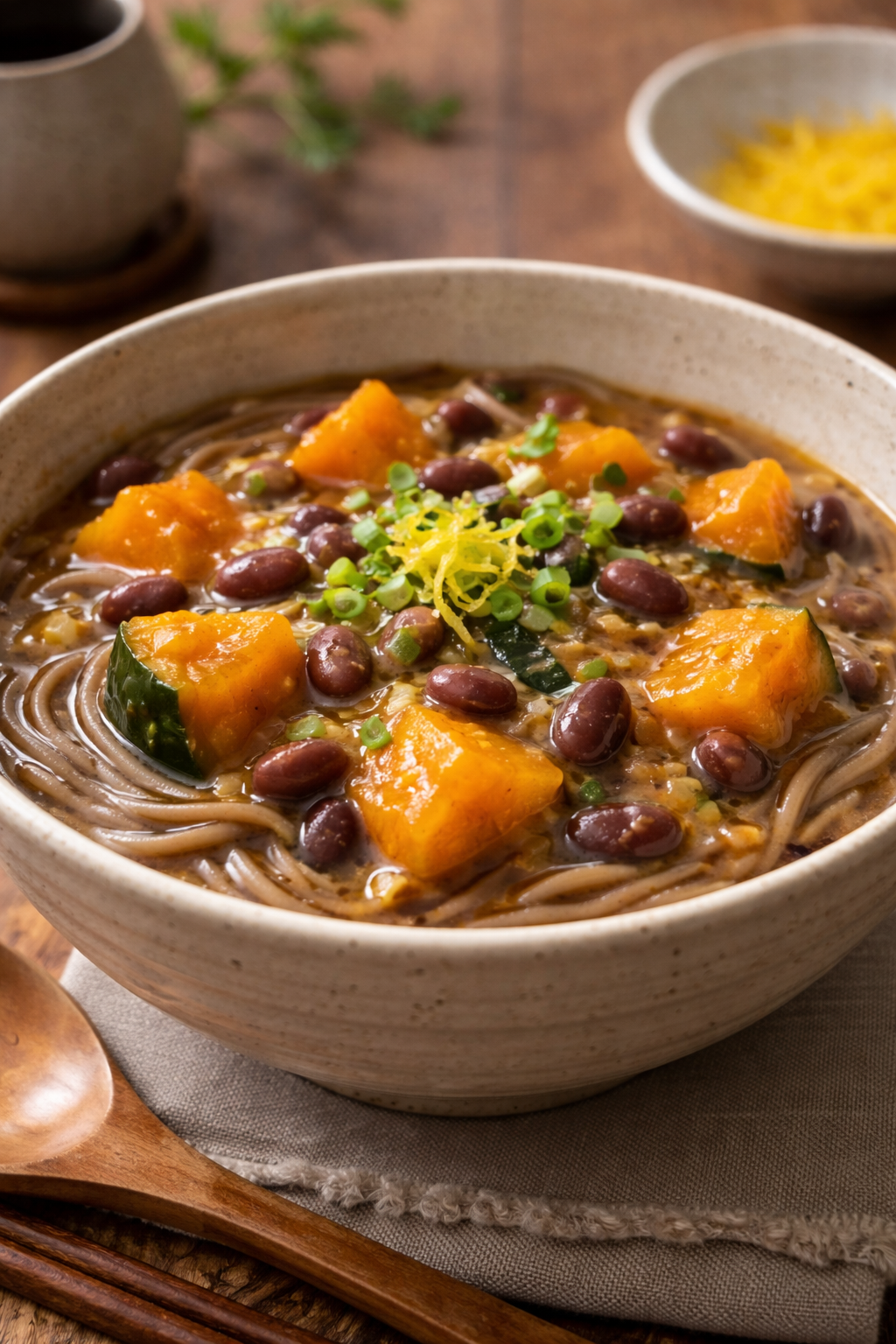 かぼちゃの自然な甘みと、小豆の滋味が合わさると、だしが驚くほど丸くなり、年末の胃腸と気持ちをそっと整えてくれます。