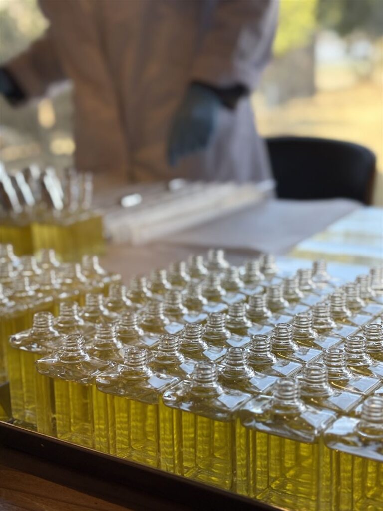 そんな環境の中で、「フレッシュモーニングエアー」は、香りを確かめながら「いい香りだね」と言い合って、ひとつひとつオイル瓶に詰めています。