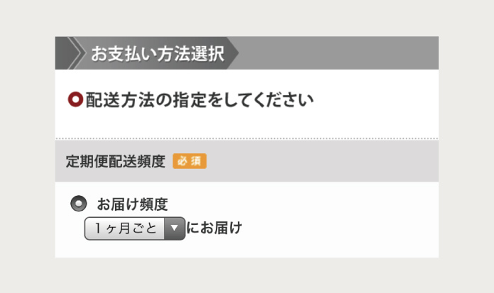 2. お支払方法選択画面にて、お届けの頻度を選びます。