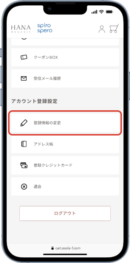 ①マイページにログインして、「登録情報の変更」をタップ