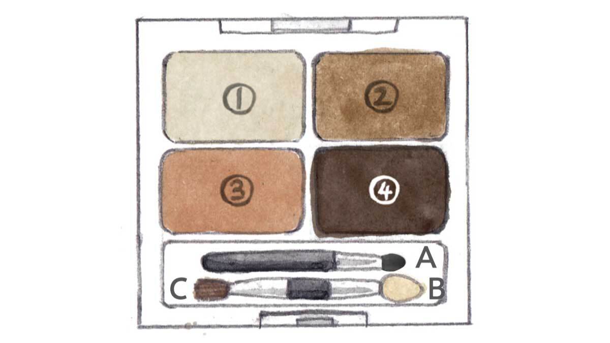 ブラシCにとり、アイホールに沿ってやや広めにつけ、自然な立体感を演出します。